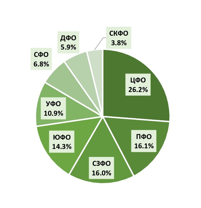 В ходе исследования, проведенного NeoAnalytics на тему «Российский рынок химчисток и прачечных: итоги 2024 г., прогноз до 2028 г.», выяснилось, что в региональной структуре рынок существенно различается. Так, в 2024 г. наибольшая концентрация оказанных услуг (объем рынка) наблюдалась в ЦФО (26,2%), ПФО (16,1%) и СЗФО (16%). Однако наиболее высокие темпы роста зафиксированы в ЮФО и СКФО: рост в 2023–2024 гг. составил +101% и +19,6% соответственно. Это свидетельствует о начале рыночной экспансии крупнейших компаний в южные и кавказские регионы, где ранее услуги химчисток были развиты слабо. Такие регионы обладают высоким потенциалом для расширения бизнеса и франчайзинга.